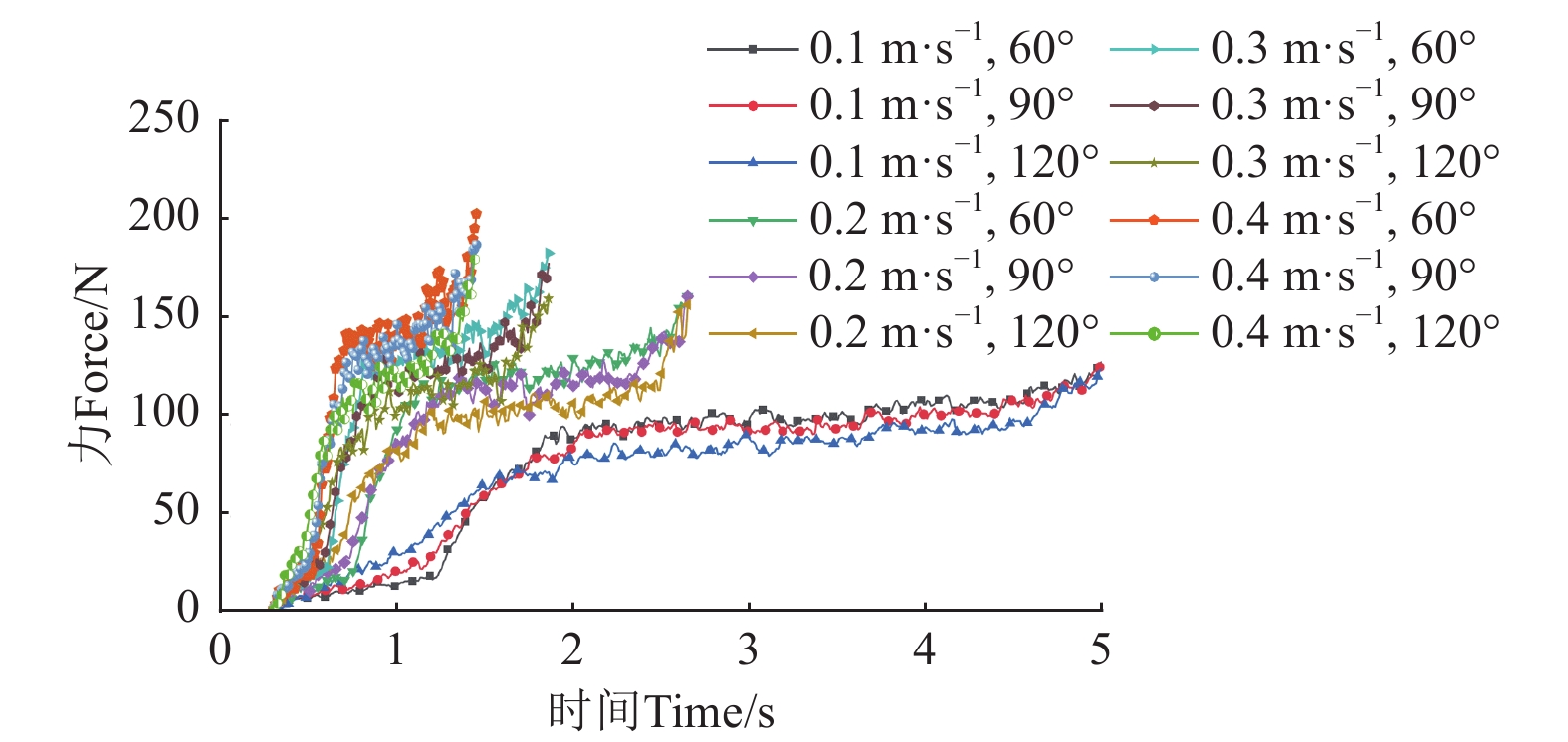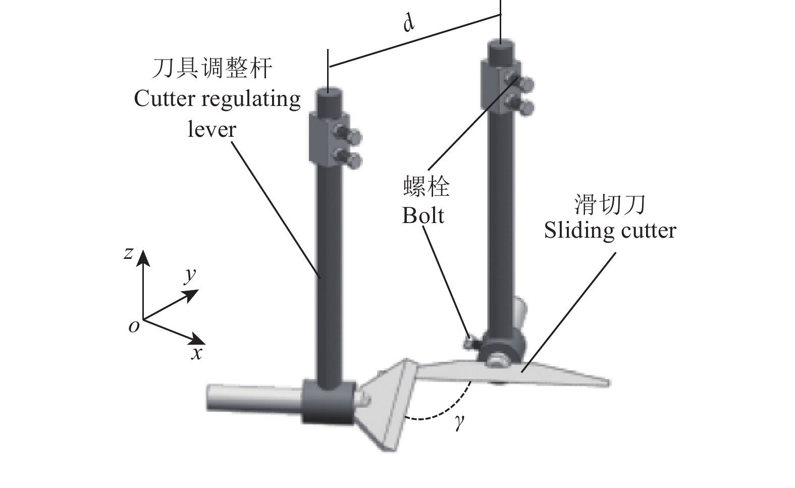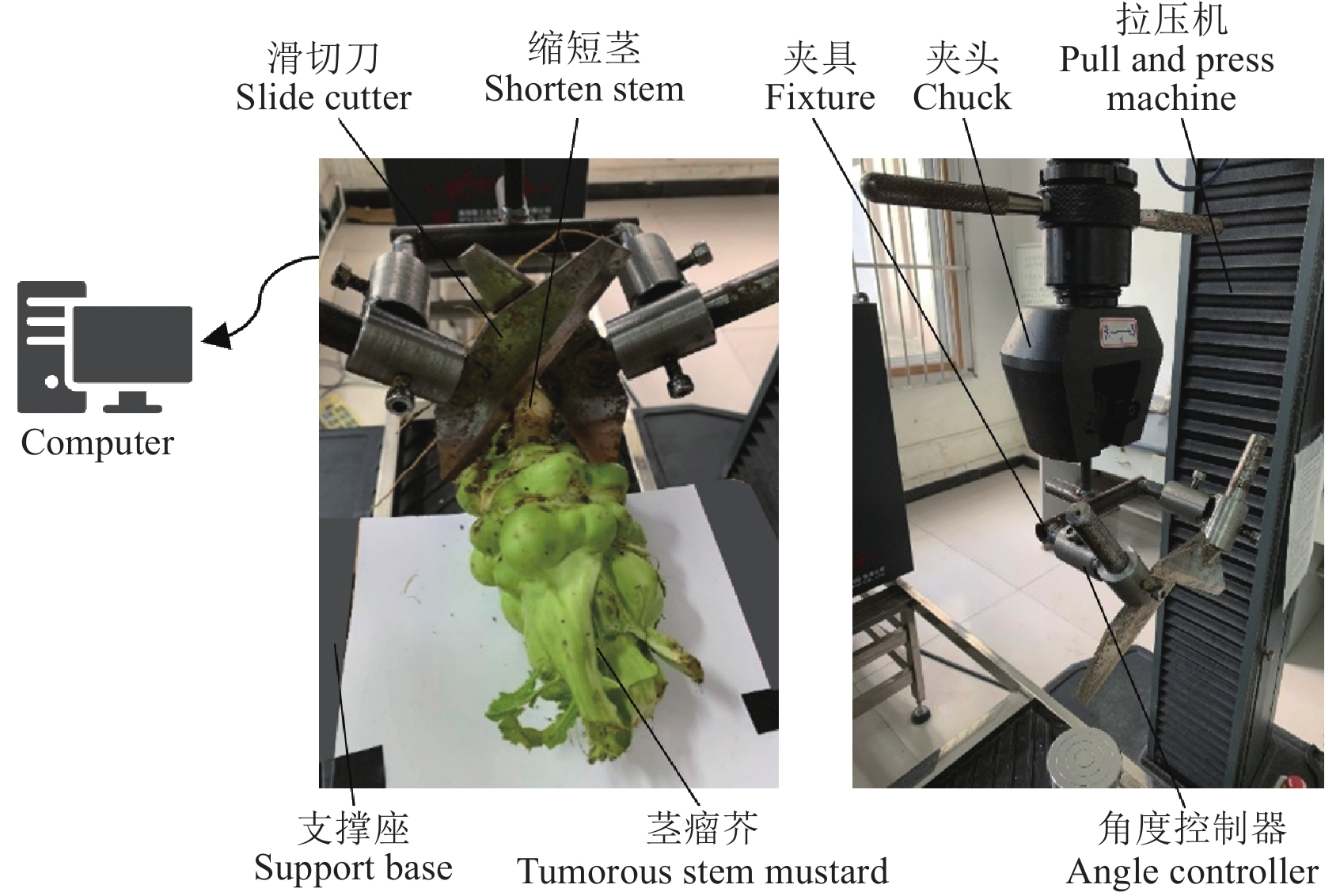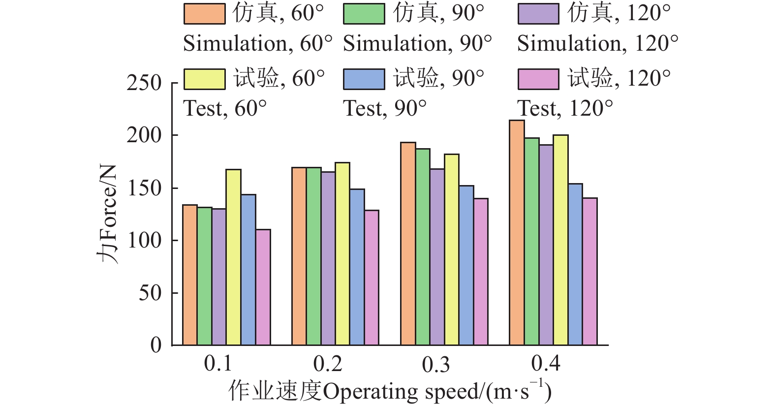 Brassica juncea var. tumida (tumorous stem mustard, TSM) is one of the most important vegetable crops of the Brassica genus of the Cruciferae family. However, the low level of mechanized harvesting cannot fully meet the large-scale production in the TSM industry. There is a high demand to shorten the stem cutting for the better integration of agricultural machinery and agronomy in the process of mechanized harvesting of TSM. In this study, a sliding-cut TSM harvester was proposed to optimize the operating parameters of its sliding cutter. Firstly, the structure and working principle were elaborated for the TSM harvester and root-cutting device, according to the agronomic requirements of the TSM harvesting. The sliding cutting was analyzed to compare the current shortened stem reciprocating and rotary cutting of TSM. The shape and structural parameters were determined to ensure the working strength of the sliding cutter. The installation of the sliding cutter was clarified, according to the force analysis. The contact parameters were calibrated between purple soil and slide cutter in the southwestern region. A soil-sliding cutter interaction model was established using EDEM software. A simulation was then implemented to analyze the impact of different operating speeds and cutter angles on the working resistance of the sliding cutter. The results showed that the angle between the sliding cutter and the working resistance was negatively correlated at the same speed, whereas, the working resistance of the sliding cutter was positively correlated with the working speed at the same sliding cutter angle. The soil tank test was conducted to verify the reliability of the parameter setting in the discrete element model, indicating the better performance of the sliding cutter. The cutting test was also carried out to optimize the test parameters, with the cutting resistance as the evaluation index, and with the operating speed, the angle of the cutter, as well as the cutting distance as the influencing factors. The results showed that the operating speed of the sliding cutter was positively correlated with the cutting resistance, whereas, the cutting distance was negatively correlated with the cutting resistance. The cutting resistance first decreased and then increased, when the tool angle was from 60° to 120°. The influencing factor of cutting resistance was ranked in the order of importance: operating speed, tool angle, and cutting distance. Furthermore, the operating speed of the sliding cutter was 0.1 m/s, the included angle of the cutter was 65°, and the cutting distance was 20 mm after optimized rounding. The values of cutting force in three repeated tests were 141.24, 156.32 and 150.65 N, respectively, where the errors were 9.8%, 21.53%, and 17.12%, respectively, compared with the theoretical of 128.63 N. Those values were 44.30%, 38.35% and 40.59% lower than the average cutting force in the Box-Behnken test. The optimal parameters of sliding knife operation were also verified. The findings can provide a strong reference for the mechanized harvesting of TSM, indicating the important engineering application.